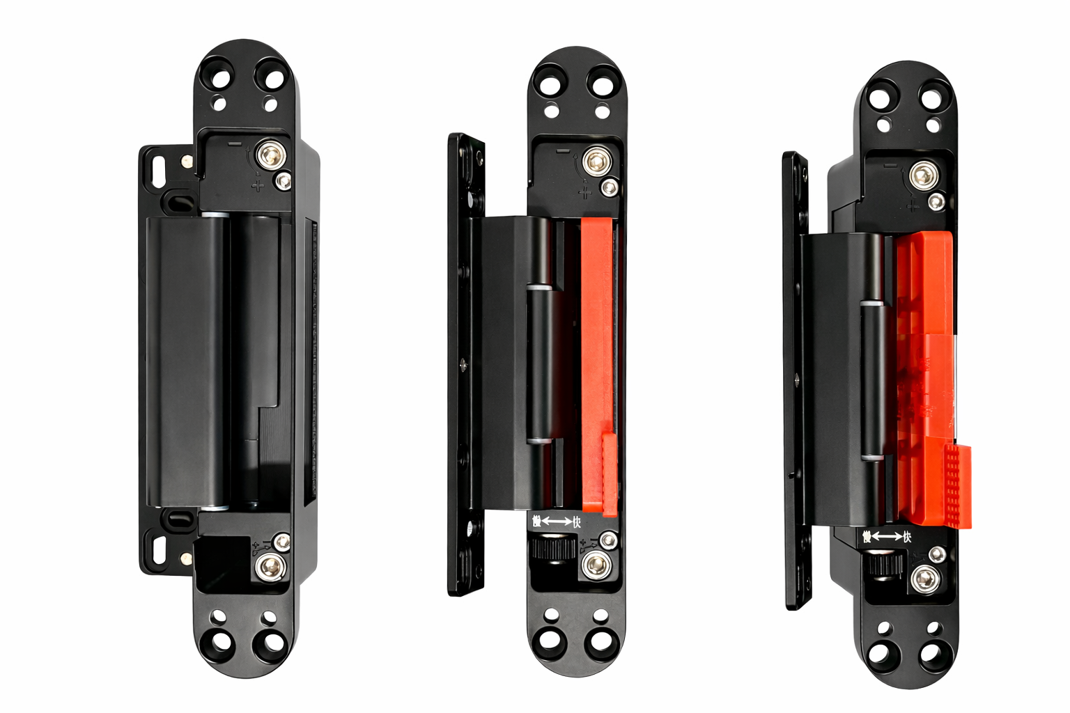 - São 2 dobradiças hidráulicas e 1 oculta simples de suporte